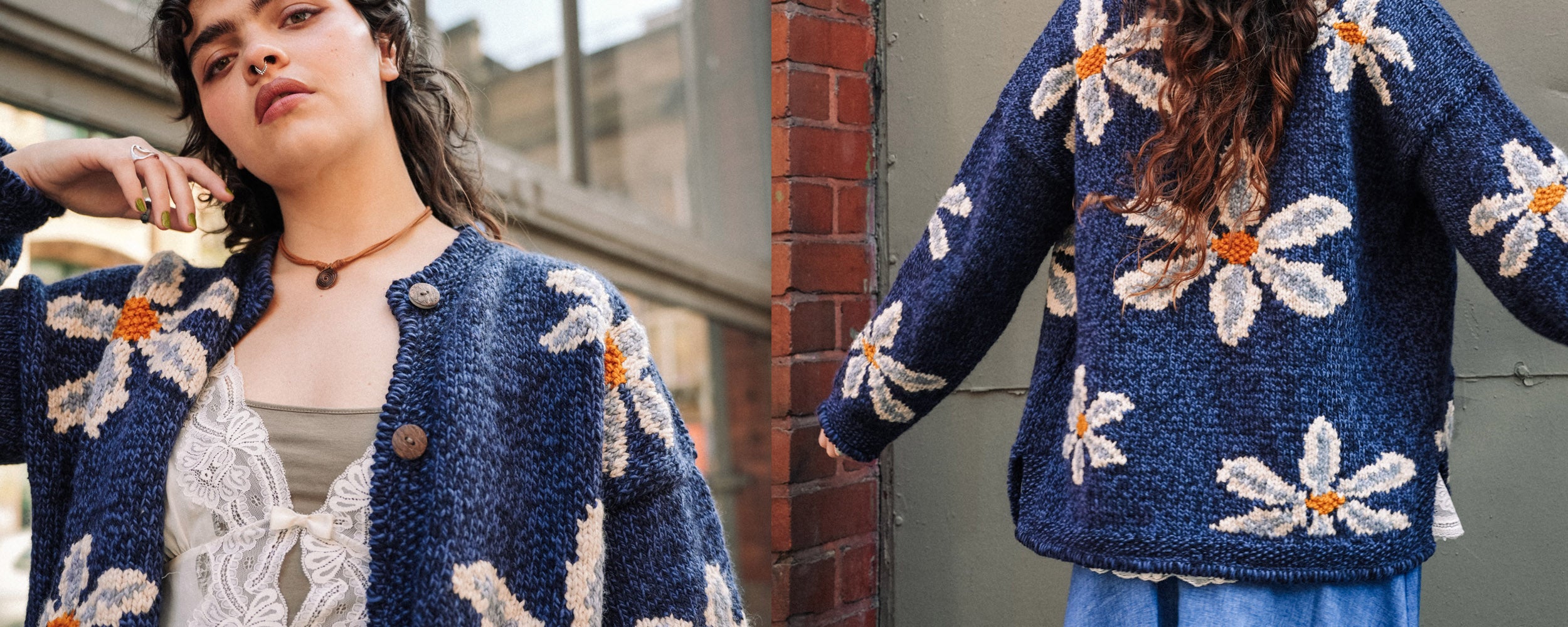 A lot of work and creativity go into making our hand-knit sweaters. From South America to wardrobes around the world, our journey is full of passion and craftsmanship. Learn more...