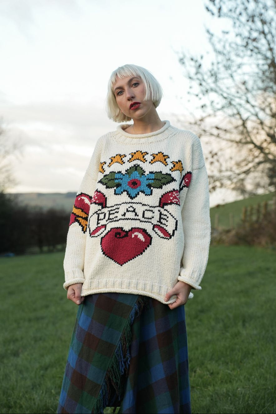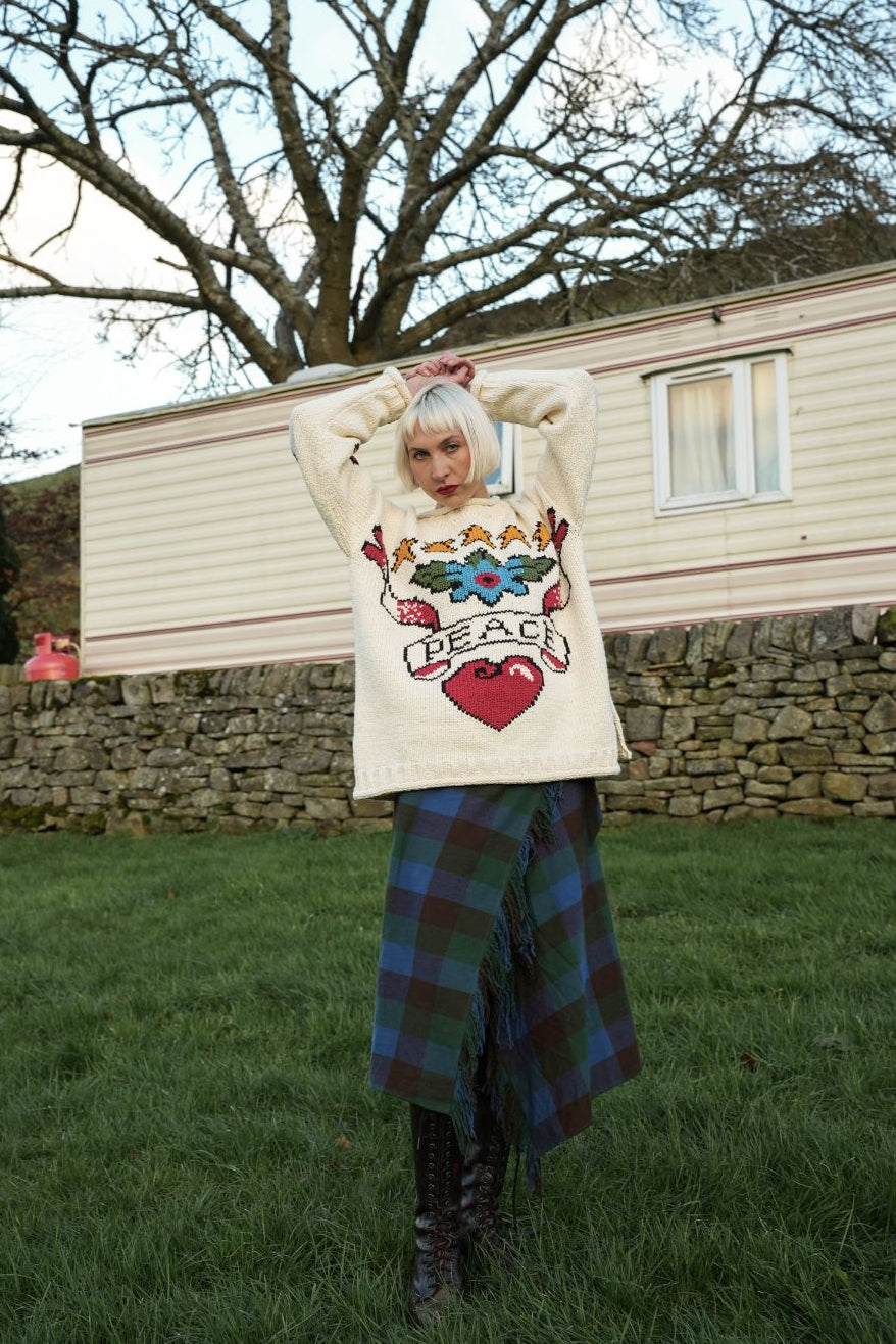 Peace Cotton Pullover: Our signature boxy shape with relaxed rib/roll trims and side splits has been added for ease. The signature Peace design has been taken from the Amano archive, originally released in '96, and brought back by popular demand.