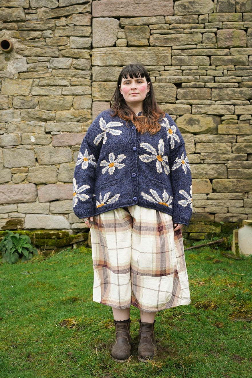 First introduced in the early 1990s. Our timeless Daisy cardigan is defined by its whimsical yet bold daisy motif, this floral knit cardigan returns in a softer wool that feels lighter and easier to wear. The relaxed button-through silhouette features artisan made ceramic buttons and two practical pockets. This iconic motif is in our signature oversized fit that layers comfortably. Ethically hand-knitted using 100% sustainably raised Peruvian wool. It is designed to be worn often and kept for years.