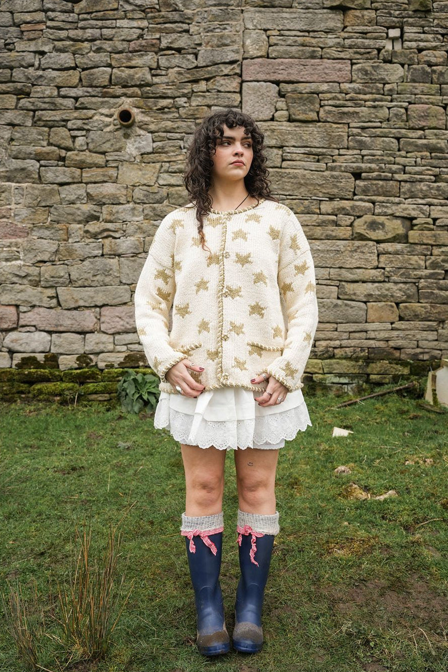Our iconic star cardigan now in organic cotton. Our signature boxy shape with rolled bound edge, pockets and star ceramic buttons. The cardigan's original incarnation was back in the mid 90's. To wear it feels soft with incredible comfort and quality.