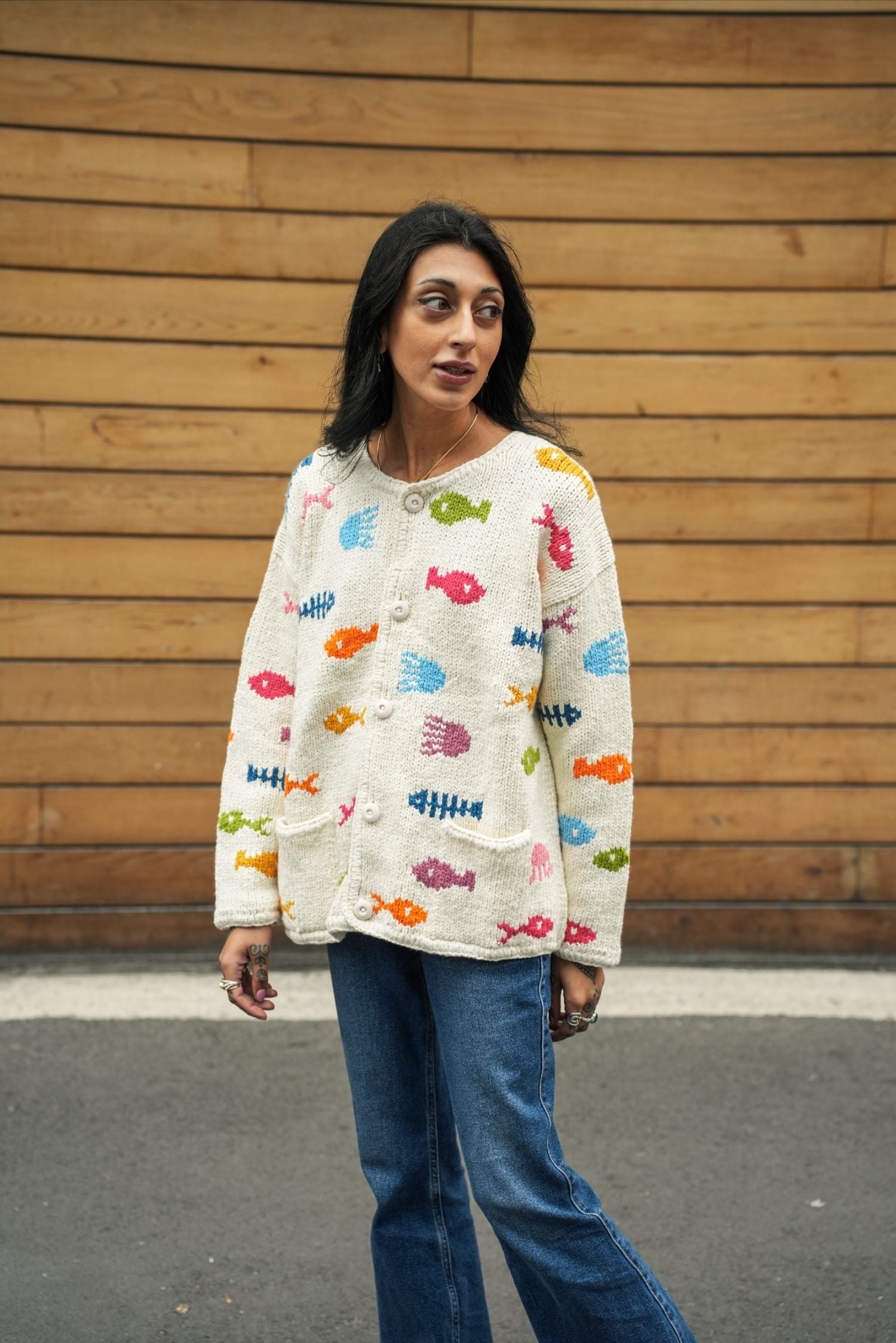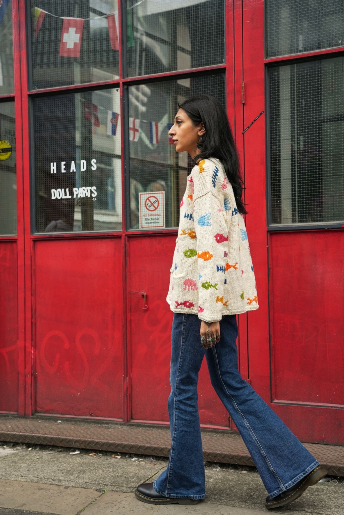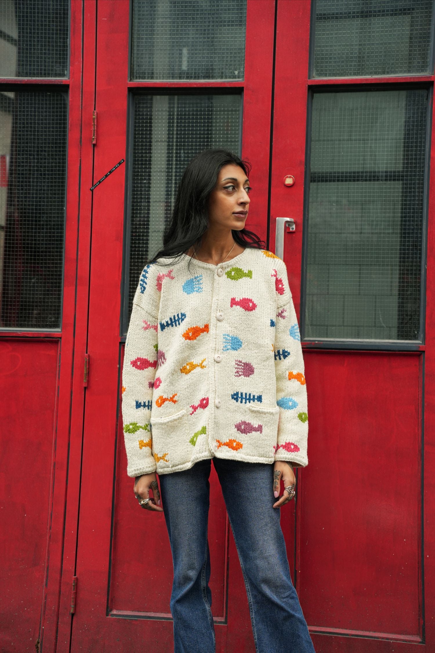 The Aquarium cardigan, an iconic Amano archive design by Yumiko. Original released in 95'. An effortless style full of comfort and quality.