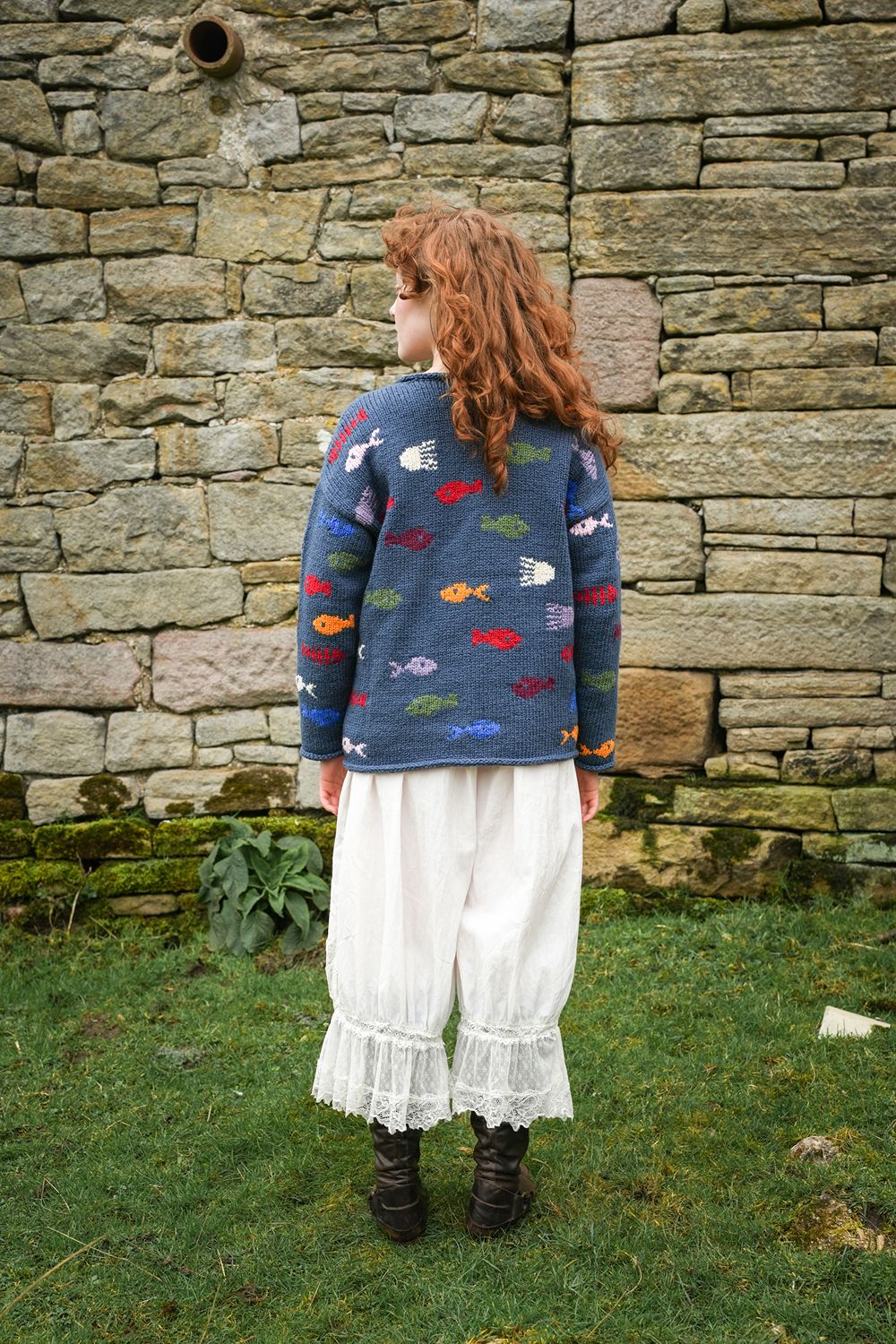 Organic cotton knitwear should be washed gently to maintain its shape and softness. We recommend hand washing or using a cold, gentle machine cycle with a wool-approved detergent. Avoid unnecessary washing, dry flat away from heat, and handle with care to extend the life of your Aquarium cotton Knit.