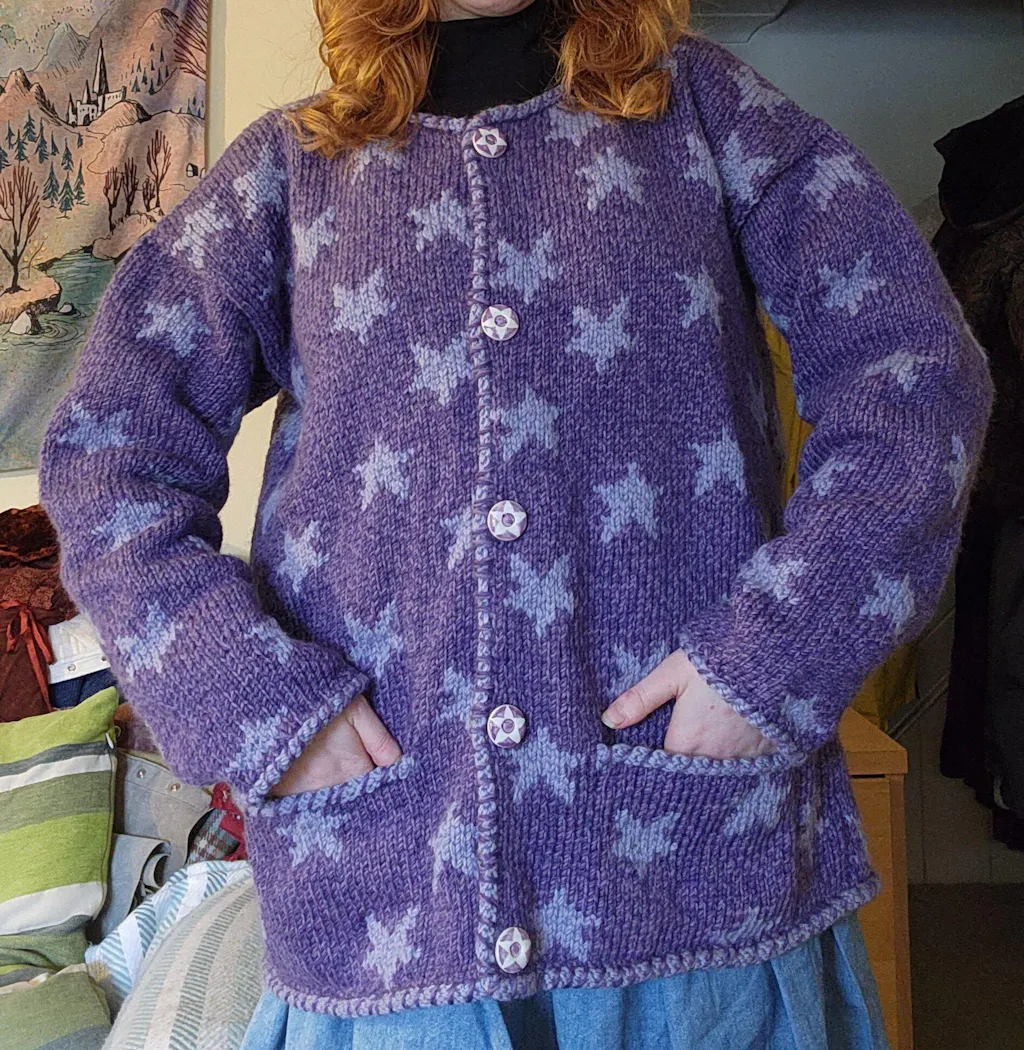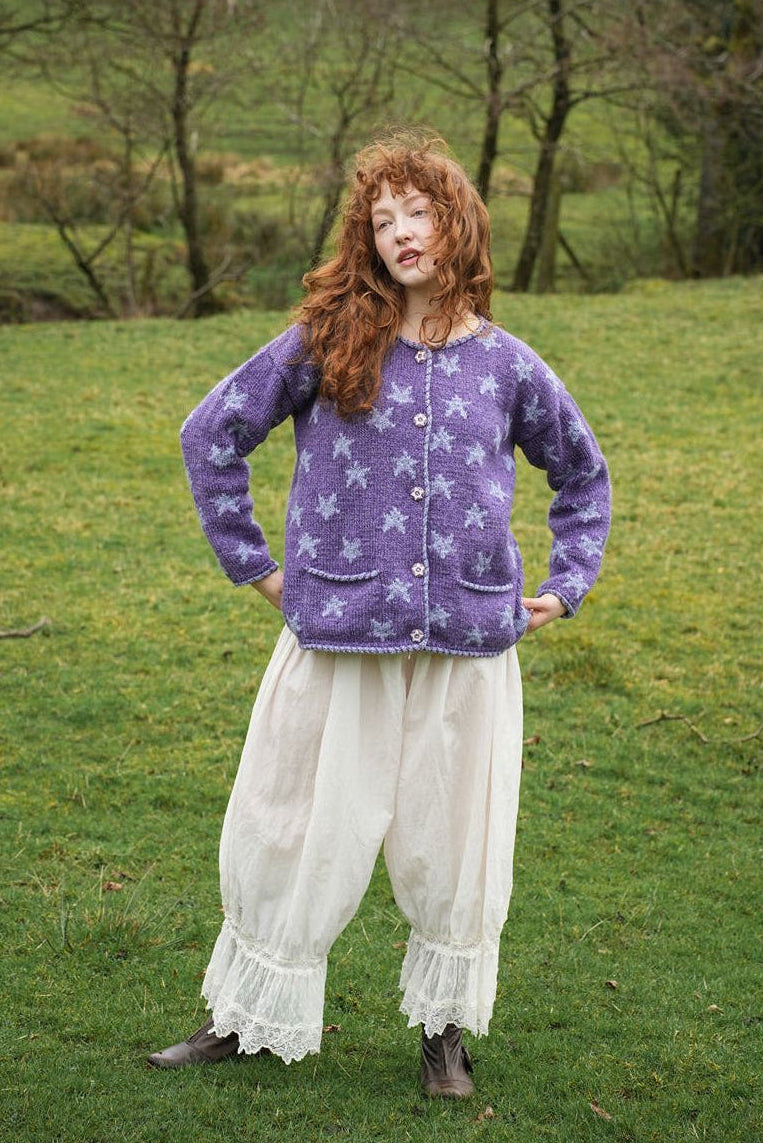 How is the Star Cardigan in Purple made?